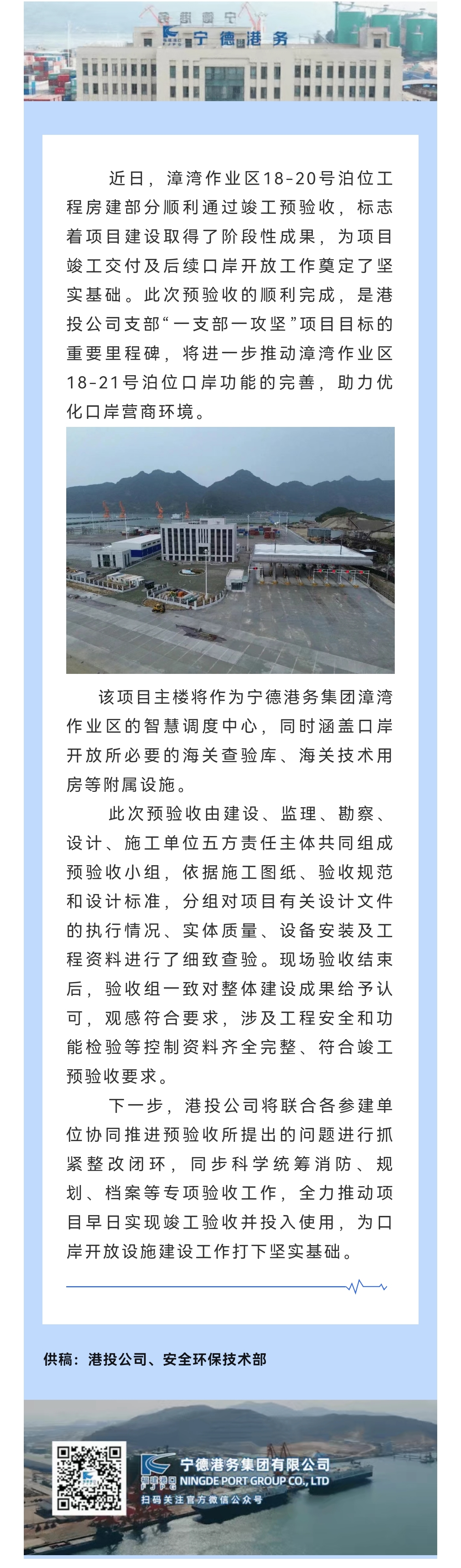 一支部攻坚一项目|漳湾作业区18-20号泊位工程房建部分顺利通过竣工预验收